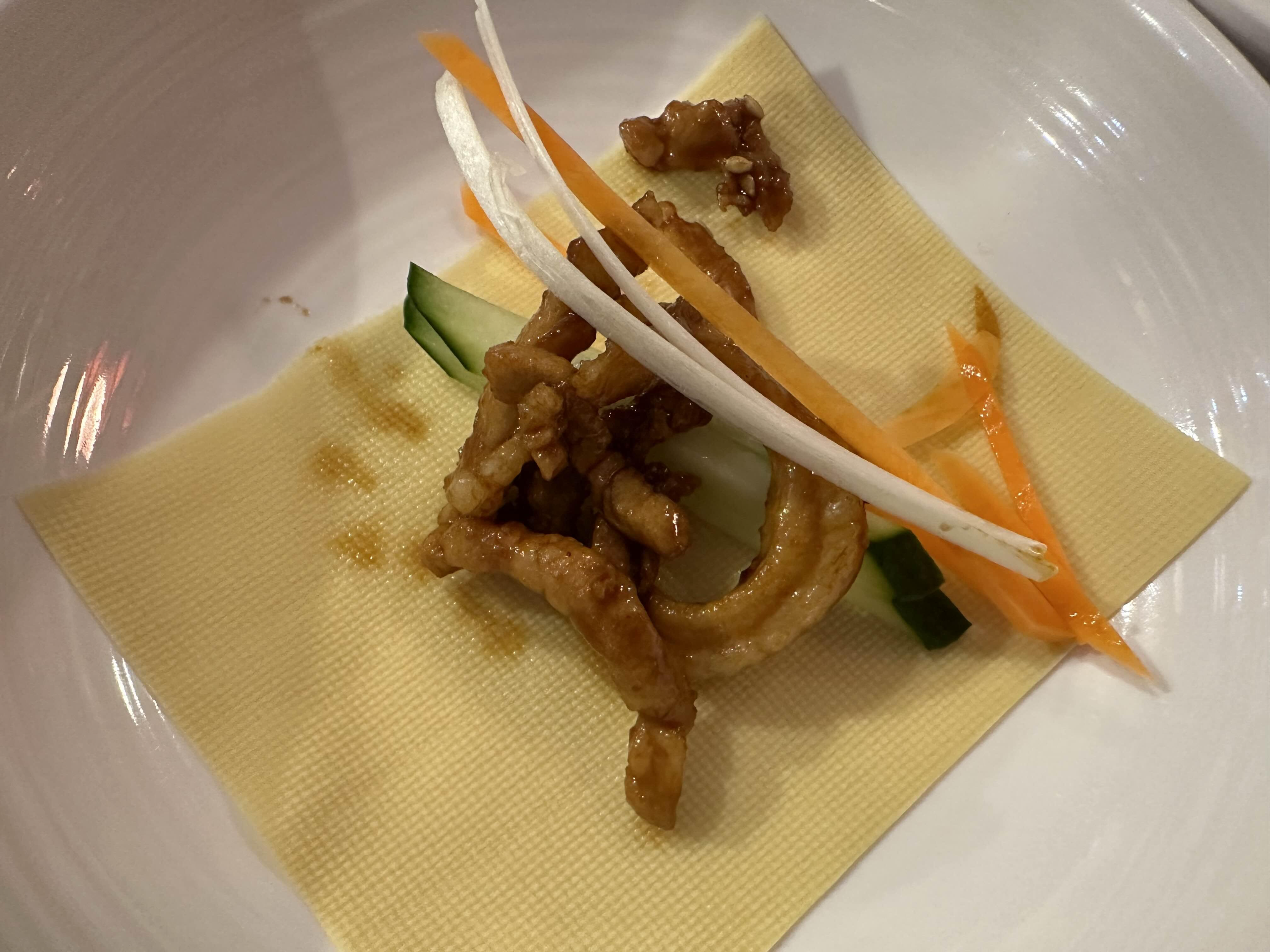 정지양러오스는 중국식 소고기 볶음 요리로, 얇게 썬 소고기와 채소를 함께 제공된다. 소고기의 부드러운 식감과 짭짤한 소스가 어우러져 두부포와 싸먹기 좋았다. 고소하면서도 감칠맛 나는 소고기의 풍미가 일품이었다.