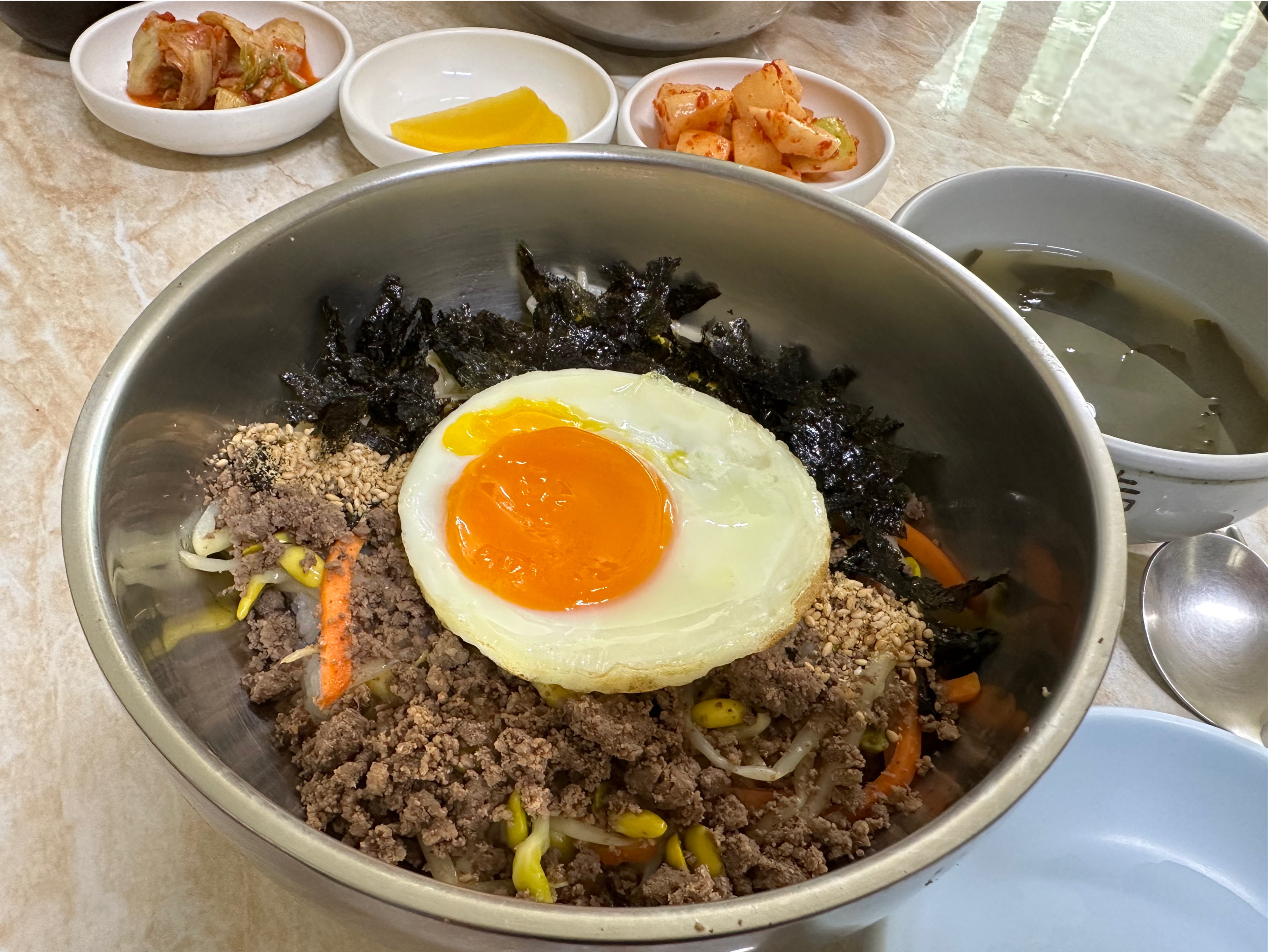 함께 나온 미역국도 맛이 좋아 비빔밥과 잘 어울렸다.