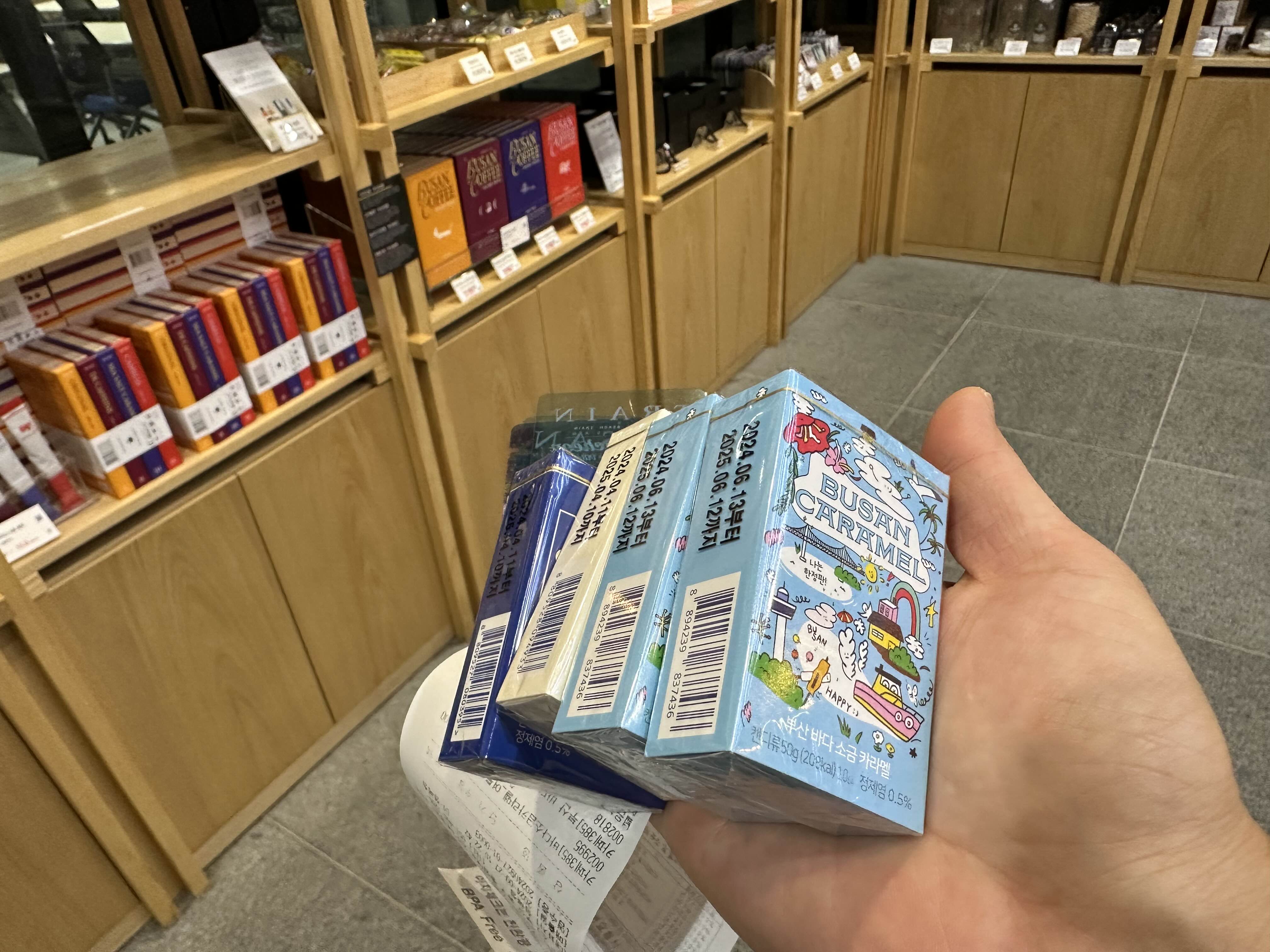 이 기념품들을 작은 포장에 정성스럽게 담아 선물했다. 친구의 자녀도 매우 기뻐하며 부산을 더욱 특별하게 기억할 수 있을 것 같았다.