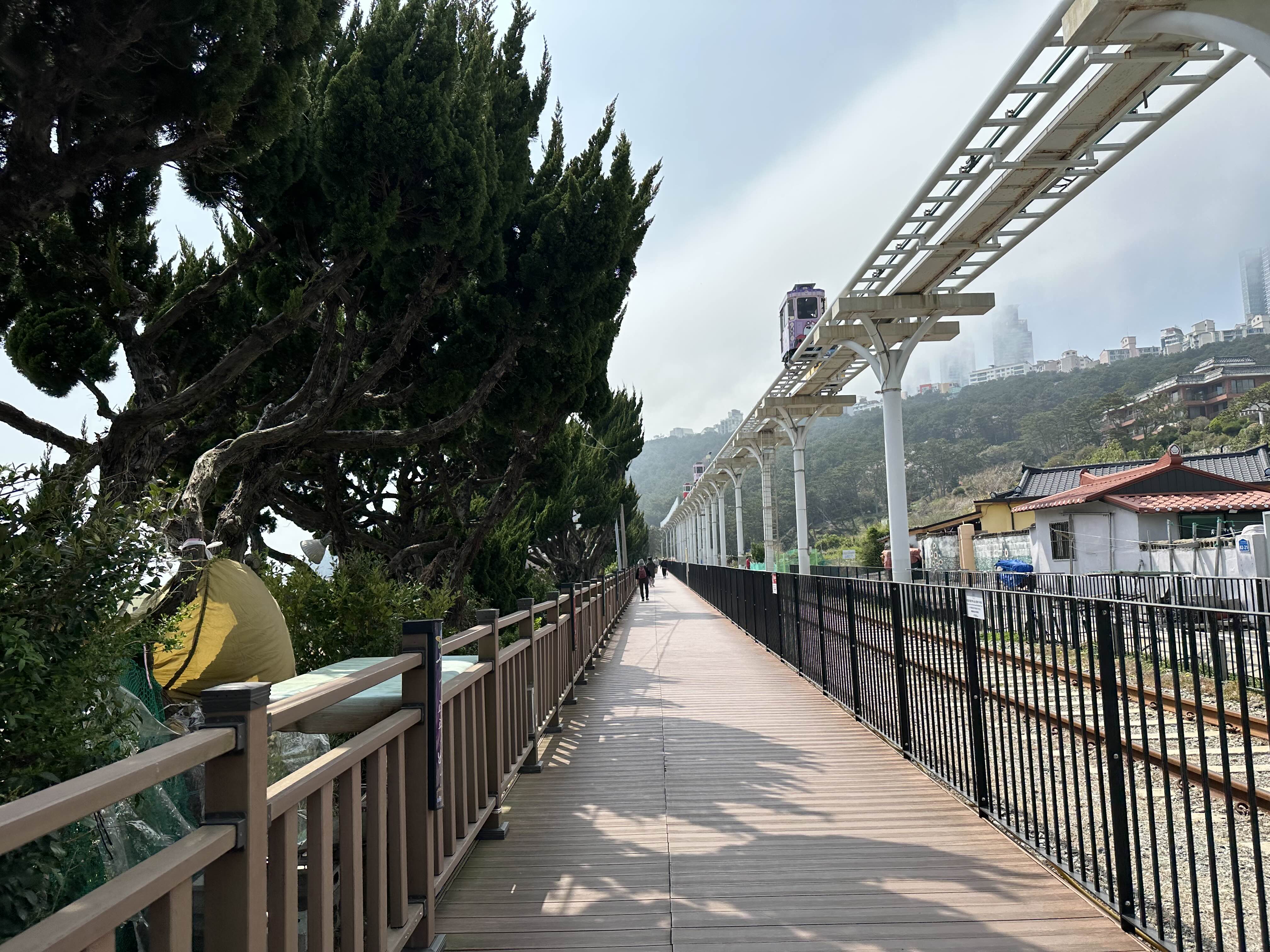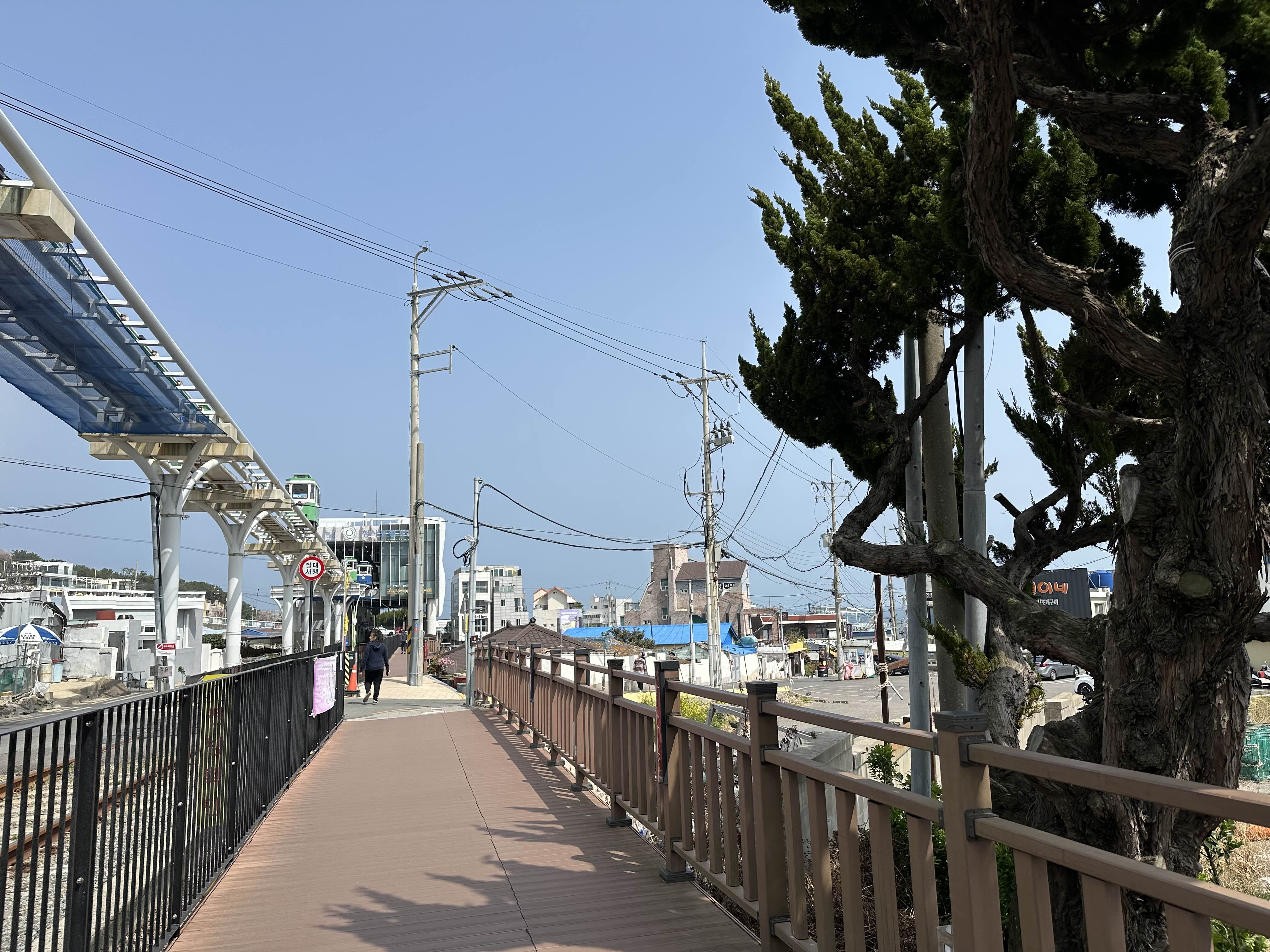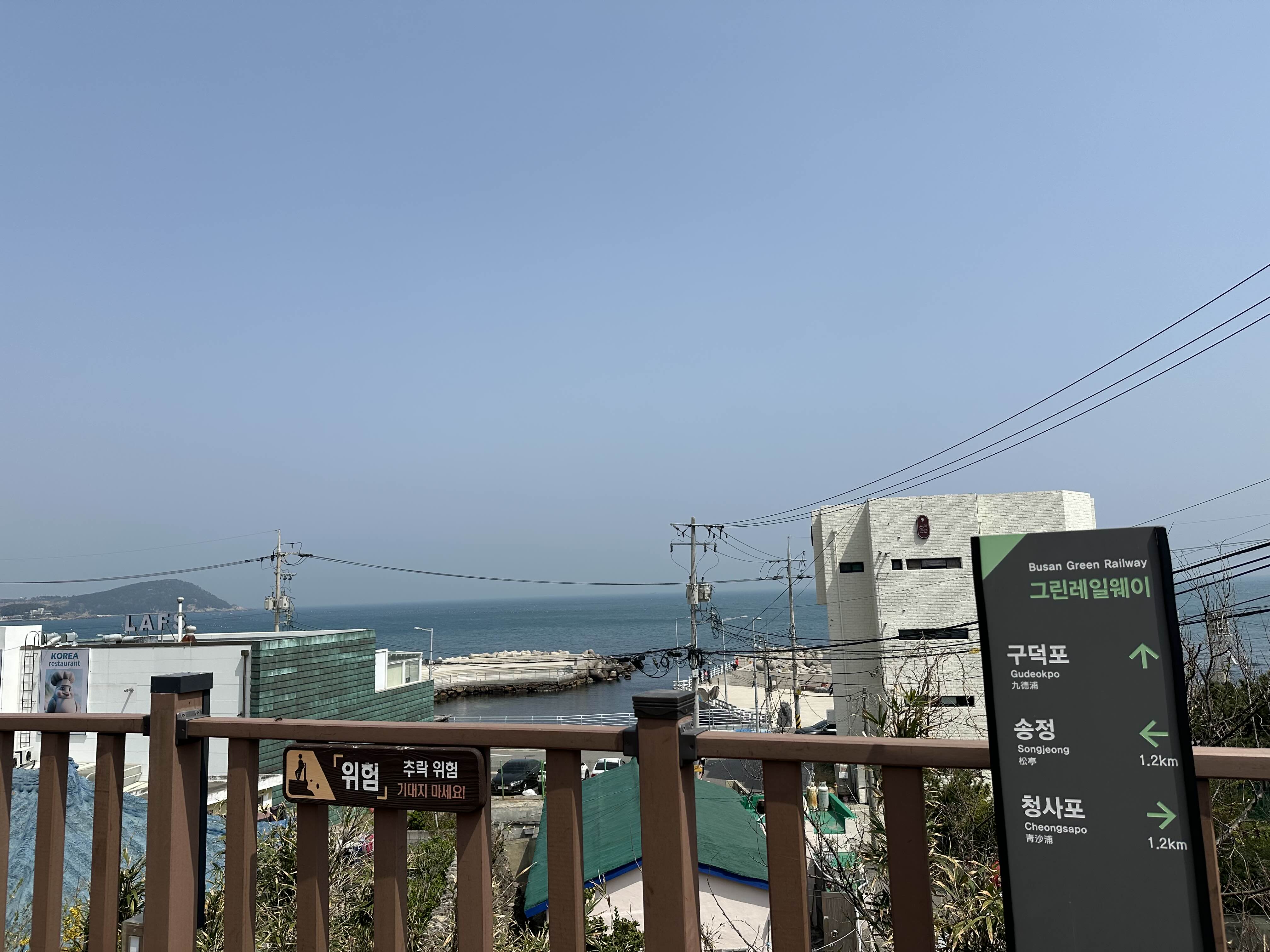청사포에서 미포까지 이어지는 그린레일웨이는 이전에는 공사 중이어서 걸을 수 없었지만, 오늘 처음으로 그 길을 걸을 수 있었다. 이 산책로는 해운대 해변열차의 미포정거장, 달맞이터널, 청사포, 다릿돌전망대, 구덕포, 송정까지 이어지는 코스로, 해안 절경을 감상하며 걷기에 최적의 장소다.