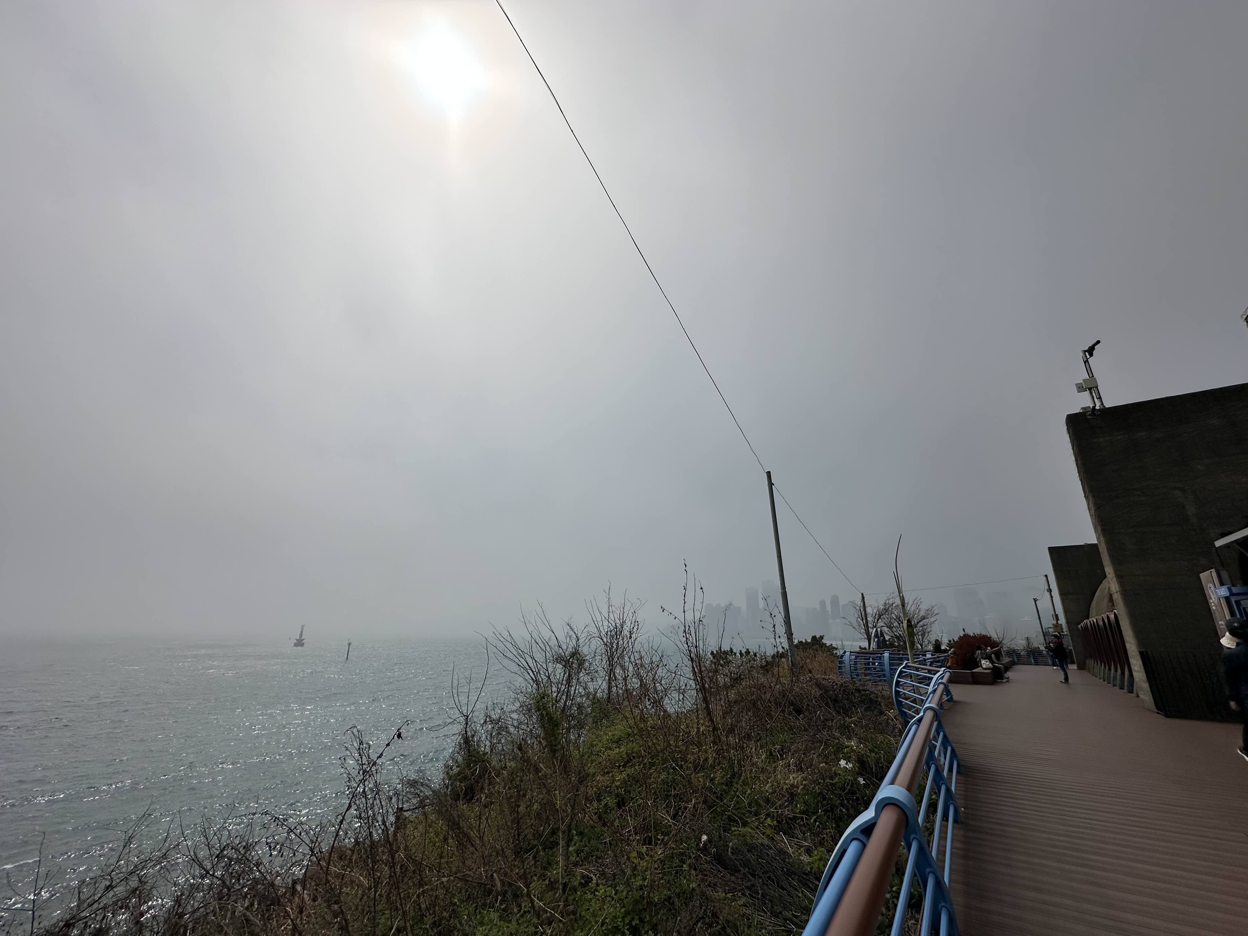 오늘은 유난히 바람이 많이 불었다. 머리카락이 흩날리고 옷깃이 흔들릴 만큼의 강한 바람. 하지만 그 바람마저도 싫지 않았다. 오히려 마음속 먼지까지 털어내 주는 것만 같아 고마웠다. 하늘은 맑고 해는 쨍쨍했다. 빛나는 햇살이 바다 위에 반사되어 반짝거리는 모습은 정말 눈부시게 아름다웠다. 지금의 기온은 17도, 따뜻하지도 차갑지도 않은 딱 좋은 봄날의 온도였다.