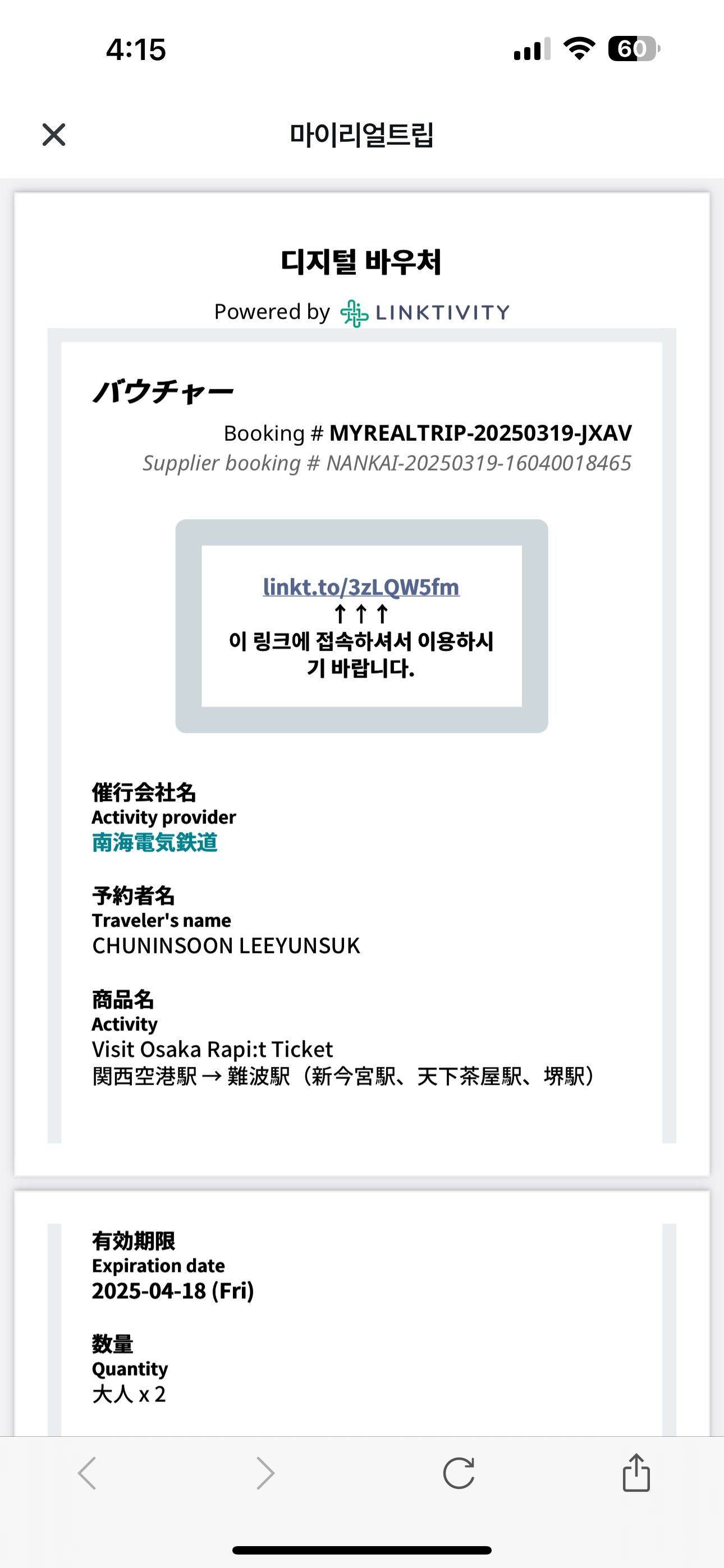 • 노선: 간사이공항 → 난카이 난바역