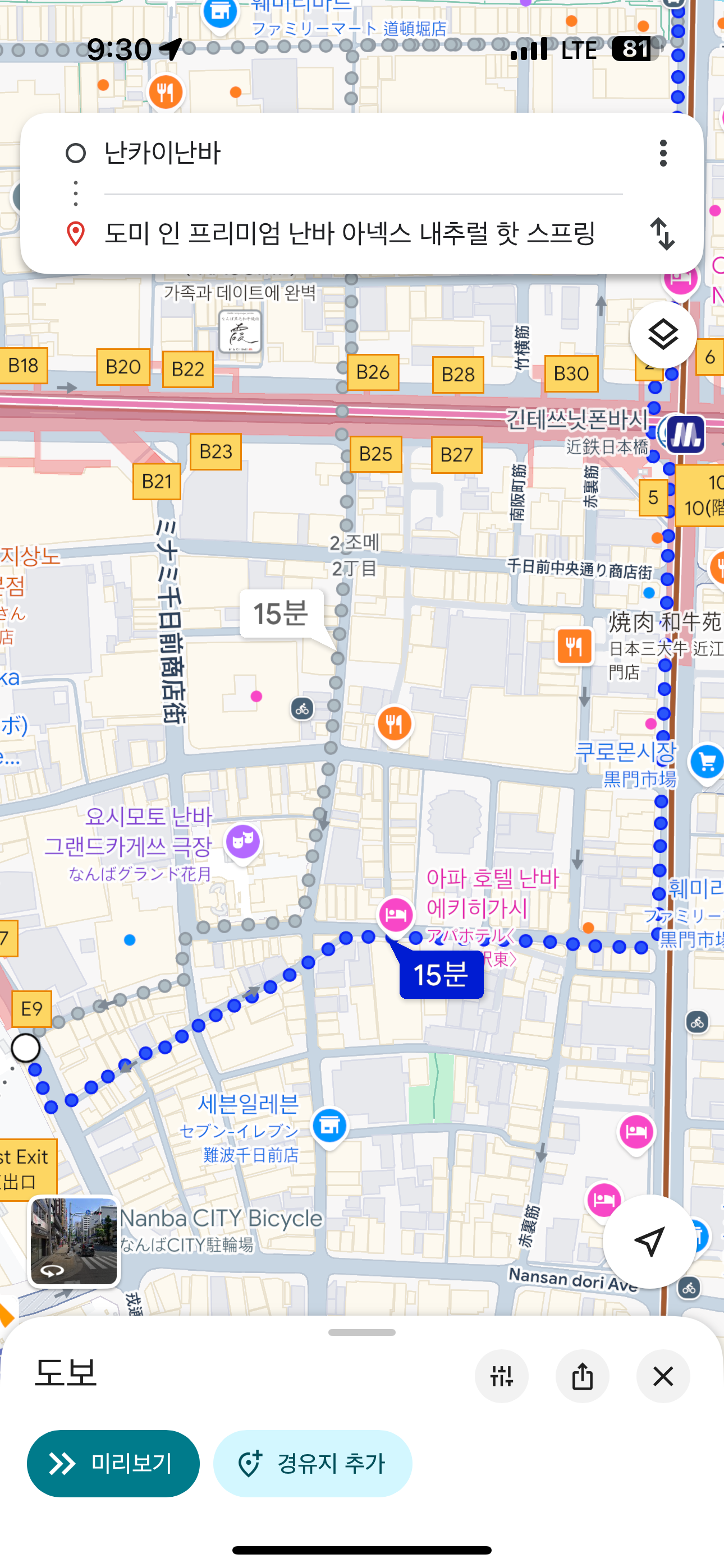 난카이 난바역에 도착한 뒤, 구글 지도를 열고 예약한 호텔까지 도보 이동을 시작했다. 길 위에는 한국인, 일본인, 중국인, 외국인 등 다양한 국적의 여행객들로 가득했다.