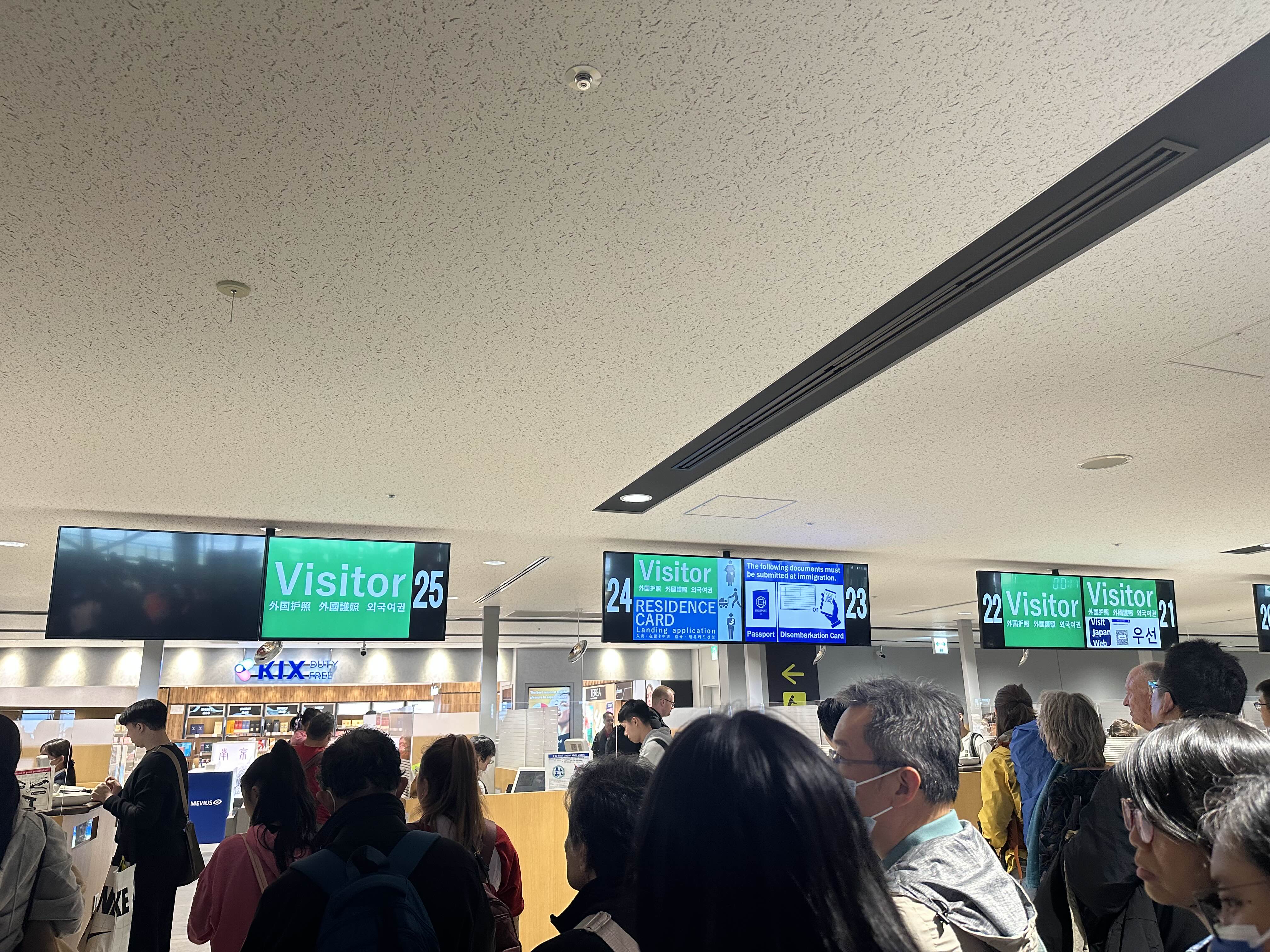 비행기에서 앞쪽 좌석을 지정해 빠르게 입국 심사대로 향했지만, 일본 입국심사 및 세관 심사가 예상보다 훨씬 길어졌다. 최종적으로 통과하는 데 거의 1시간 이상이 걸려, 미리 예약해 둔 난카이 라피트(보라색 고속열차)를 놓치고 말았다.
