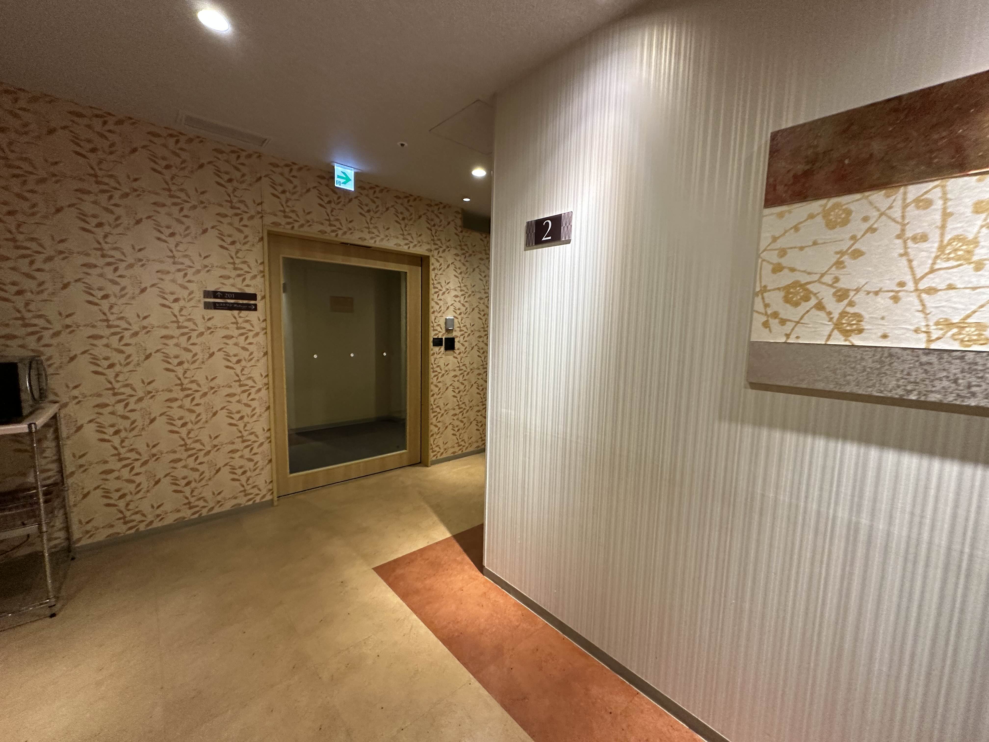 식사를 마치고, 방에서 제공된 온천용 유카타와 슬리퍼를 착용하고 13층 온천으로 이동했다. 여자 사우나 입구에 설치된 비밀번호 입력장치에, 체크인 시 받은 비밀번호를 누르면 문이 열린다. 보안까지 잘 되어 있어 안심이 된다.