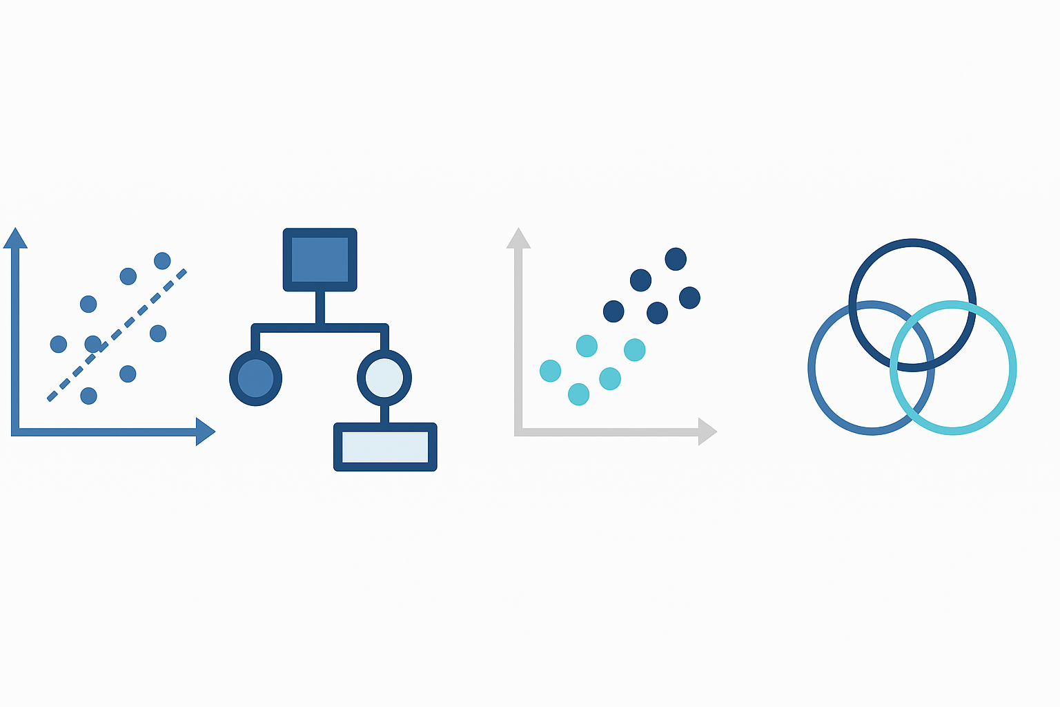 | 군집분석 (Clustering) | K-means, 계층적 군집, DBSCAN 등 | 라벨 없는 그룹화 |