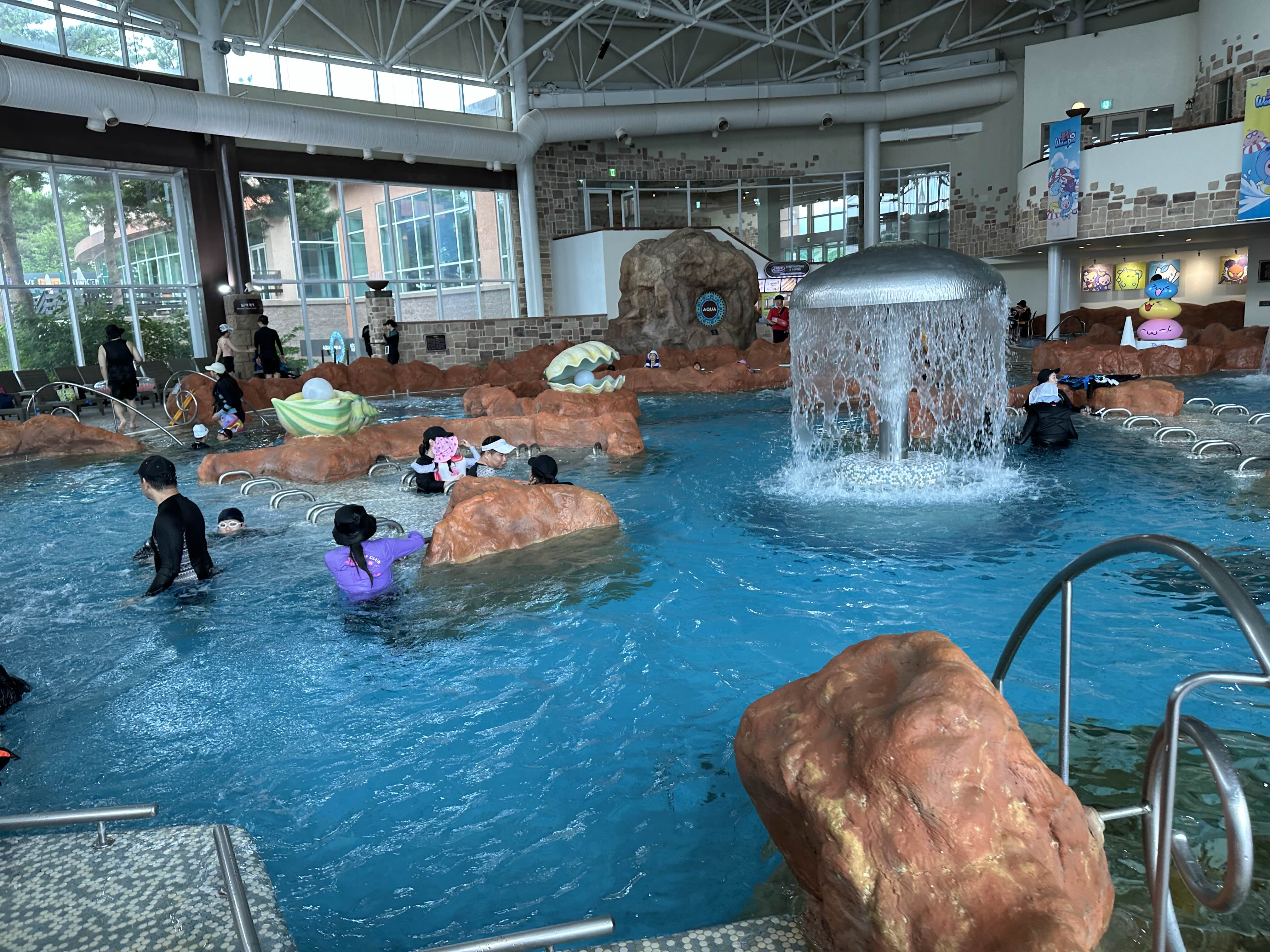 먼저 실내 시설 중에서 샤크블루를 이용했다. 넓고 깨끗한 실내 풀장에서 시원하게 물놀이를 즐길 수 있었고, 다양한 수심 구간이 있어 어린아이부터 어른까지 모두가 즐길 수 있는 공간이었다. 샤크블루에서 놀다 보면 재미있는 이벤트도 계속하고 시간가는 줄 모르겠다.
