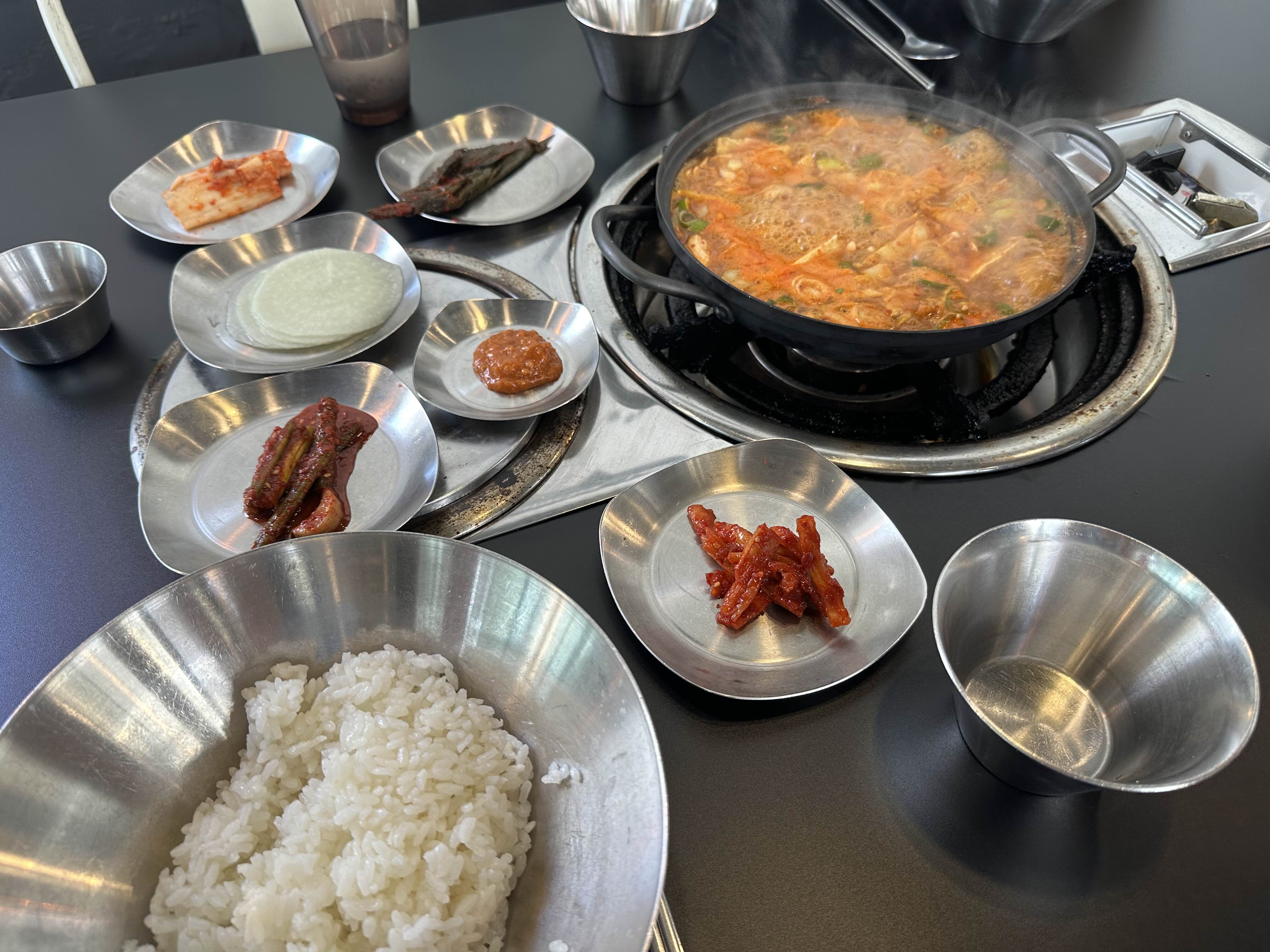 오늘 점심으로 삼차회담 소고기구이집에 다녀왔다. 이곳은 고깃집이지만, 점심특선 메뉴로 차돌된장찌개와 제육볶음을 제공하는 곳이다. 점심 메뉴는 딱 하나여서, 고민할 필요 없이 자리에 앉으면 바로 상차림이 준비된다.