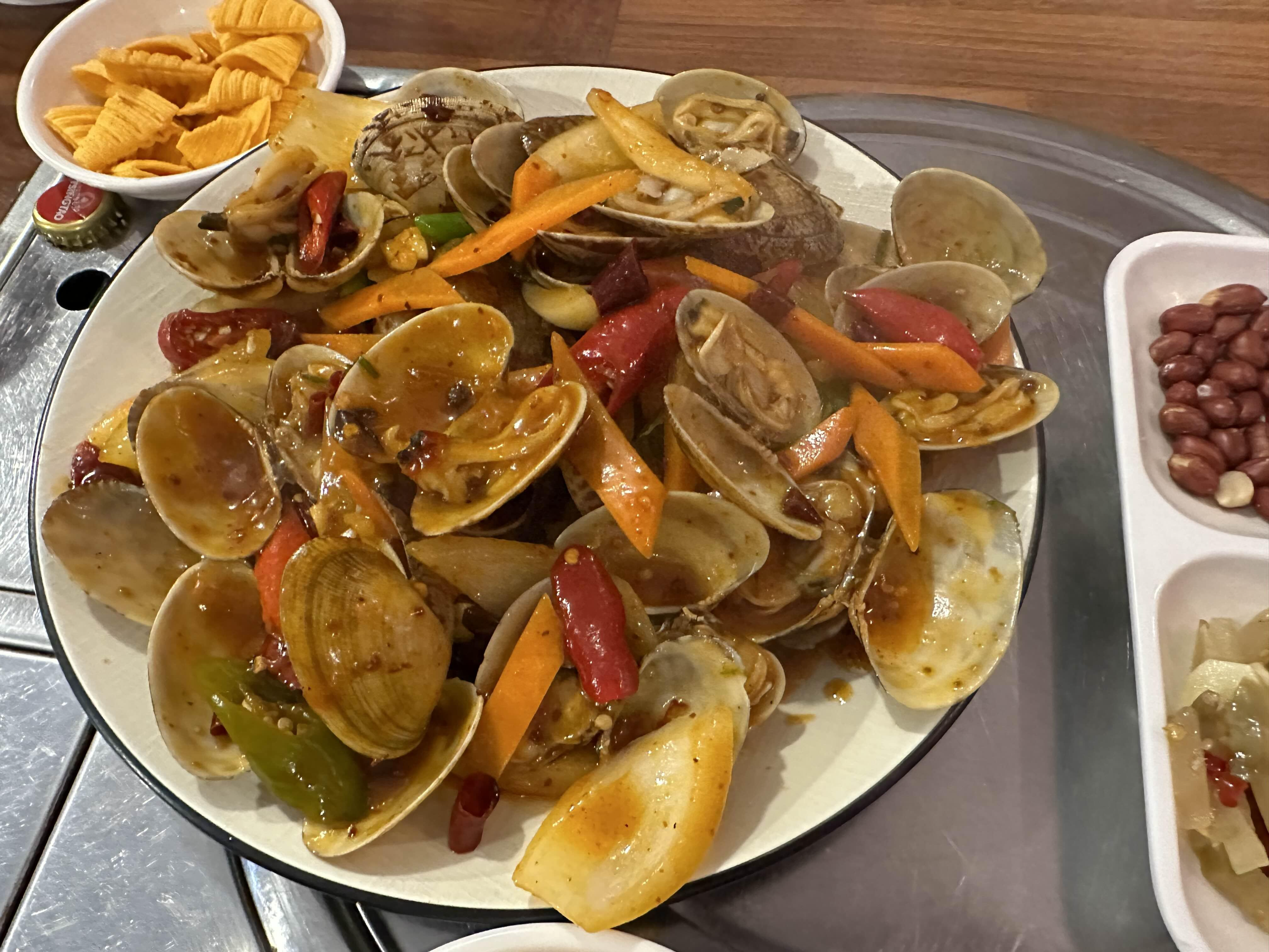 신선한 바지락을 매콤한 양념과 함께 볶아낸 요리로, 바지락 특유의 담백함과 양념의 조화가 일품이었다. 탱글탱글한 바지락 살과 매콤한 소스가 입안 가득 퍼지며, 마라향이 듬뿍난다.
