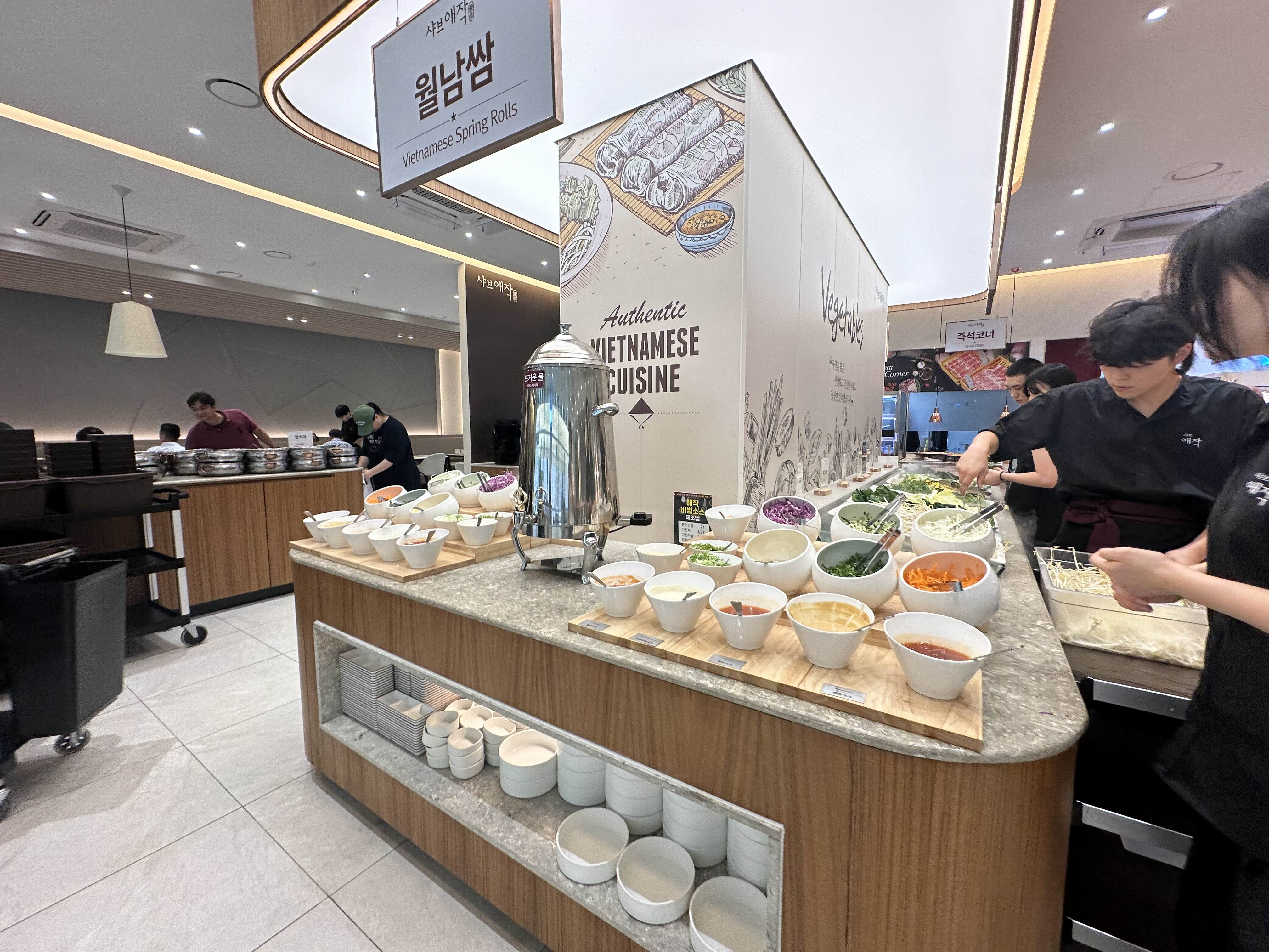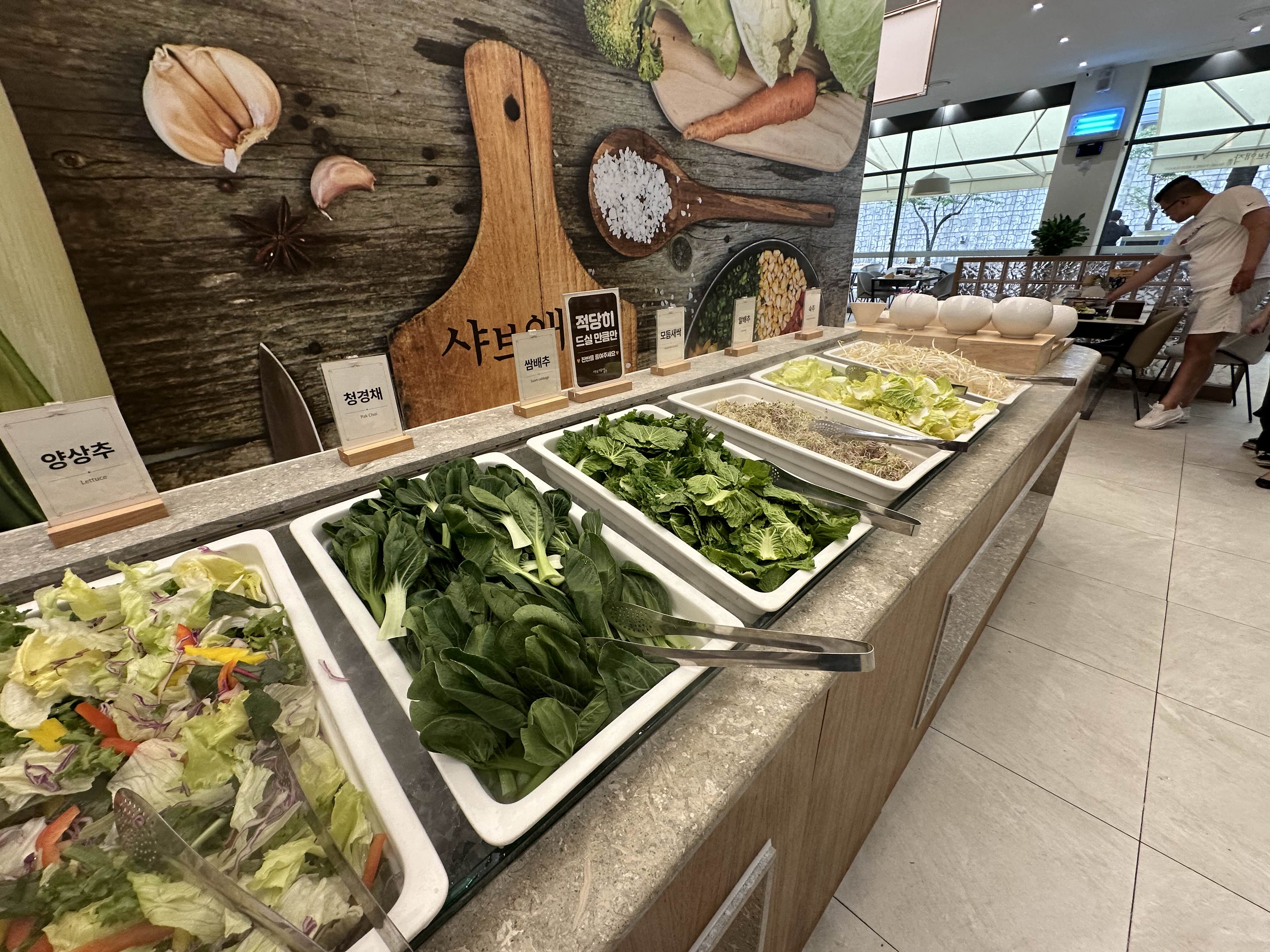 샤브샤브 고기와 함께 각종 야채들이 제공되었는데, 양상추, 청경채, 쌈배추, 모듬새싹, 알배추, 숙주까지 종류가 정말 다양했다. 또한, 월남쌈에 싸 먹을 수 있는 야채와 소스도 마련되어 있어 더욱 다양한 맛을 즐길 수 있었다.