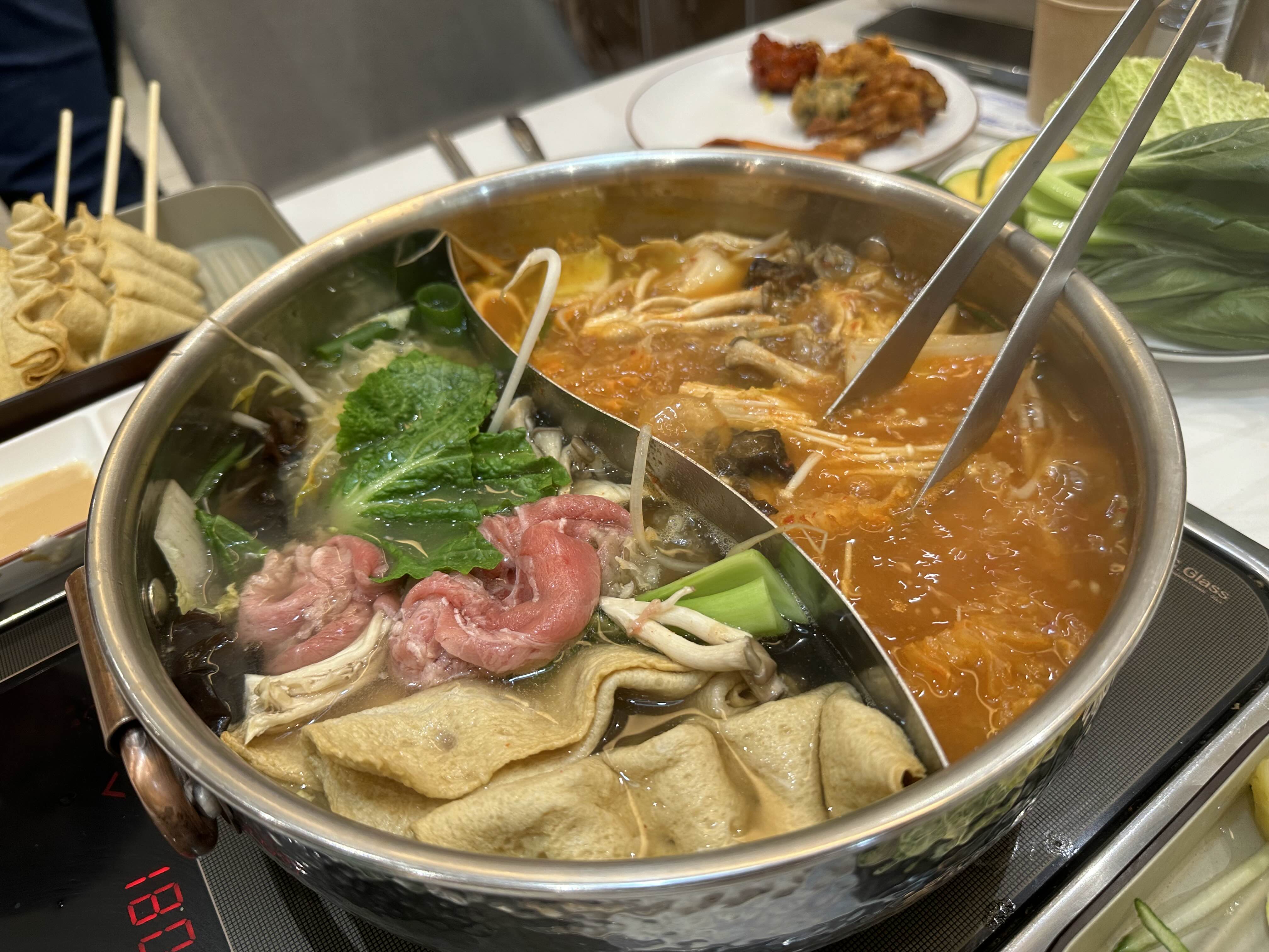 육수는 반반육수로 선택했다. 신선한 재료와 맛있는 샤브샤브를 즐길 수 있었다.