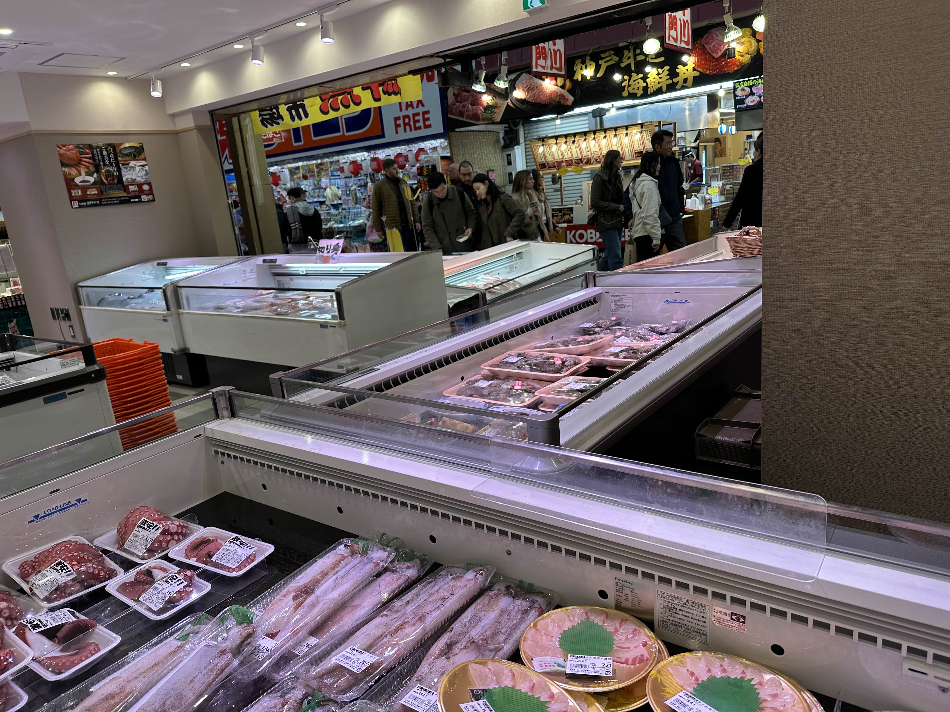 다시 오사카난바역으로 돌아와, 아까 둘러보지 못했던 쿠로몬시장을 찾았다. 낮에는 바빠서 스쳐 지나갔지만, 이제야 여유를 가지고 둘러볼 수 있었다. 쿠로몬시장은 마치 우리나라 재래시장처럼 시끌벅적하고 활기찬 분위기였다.