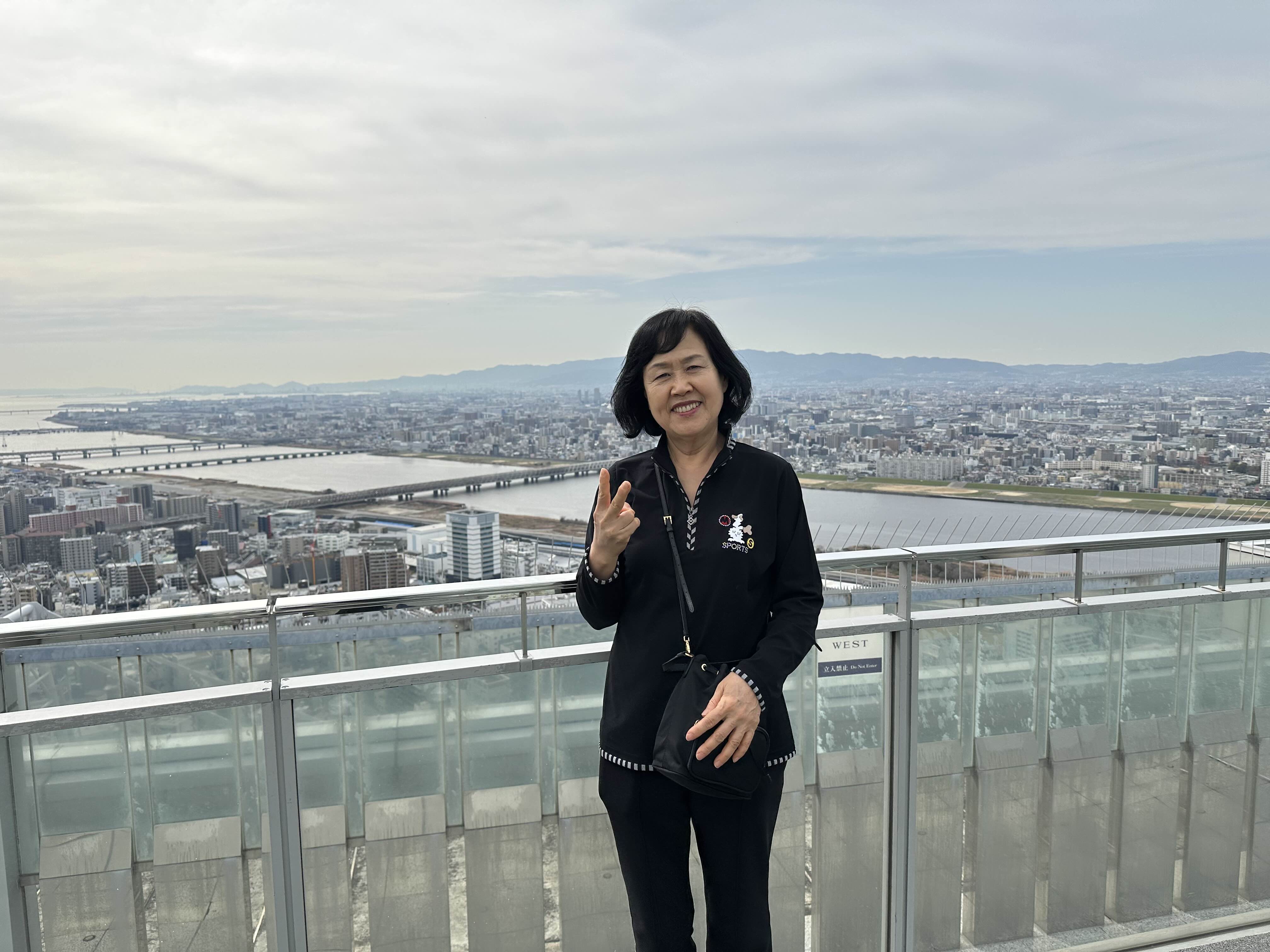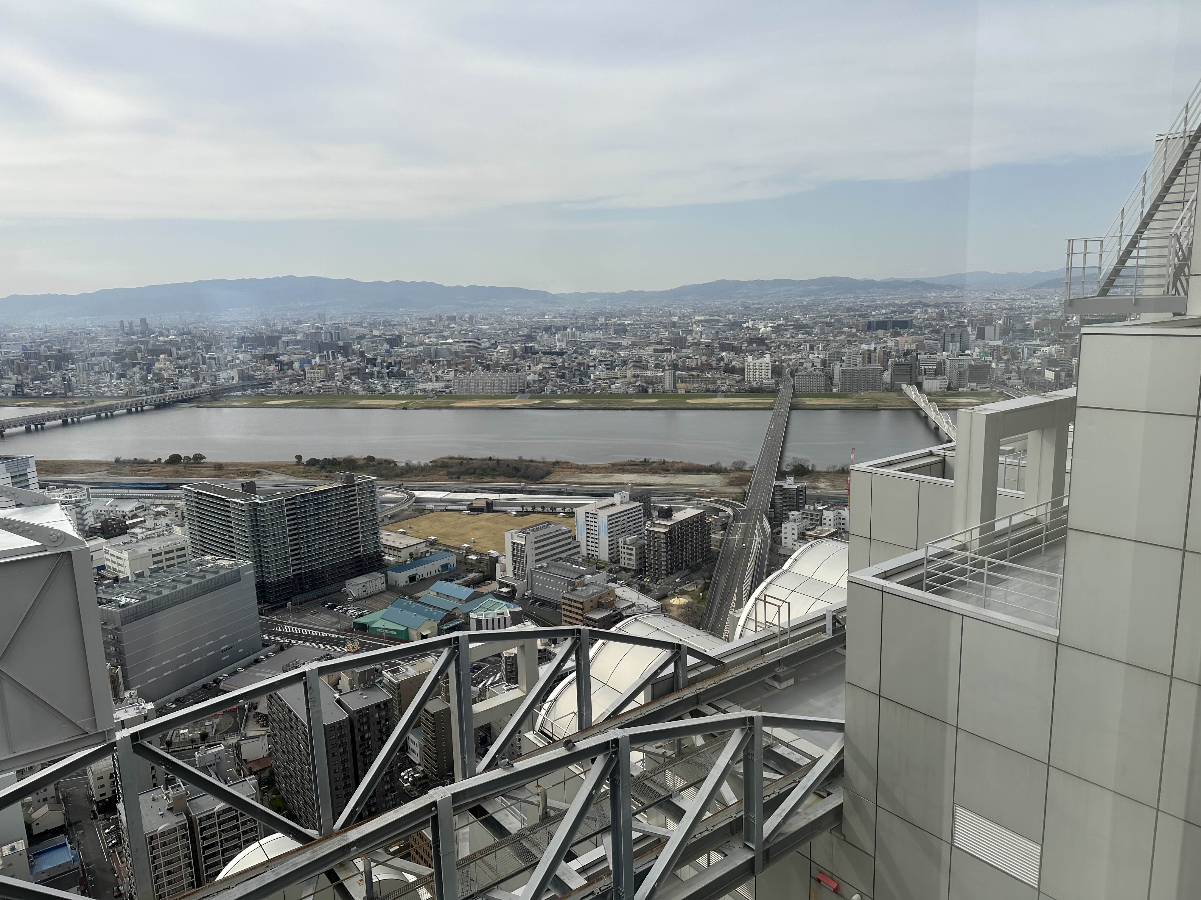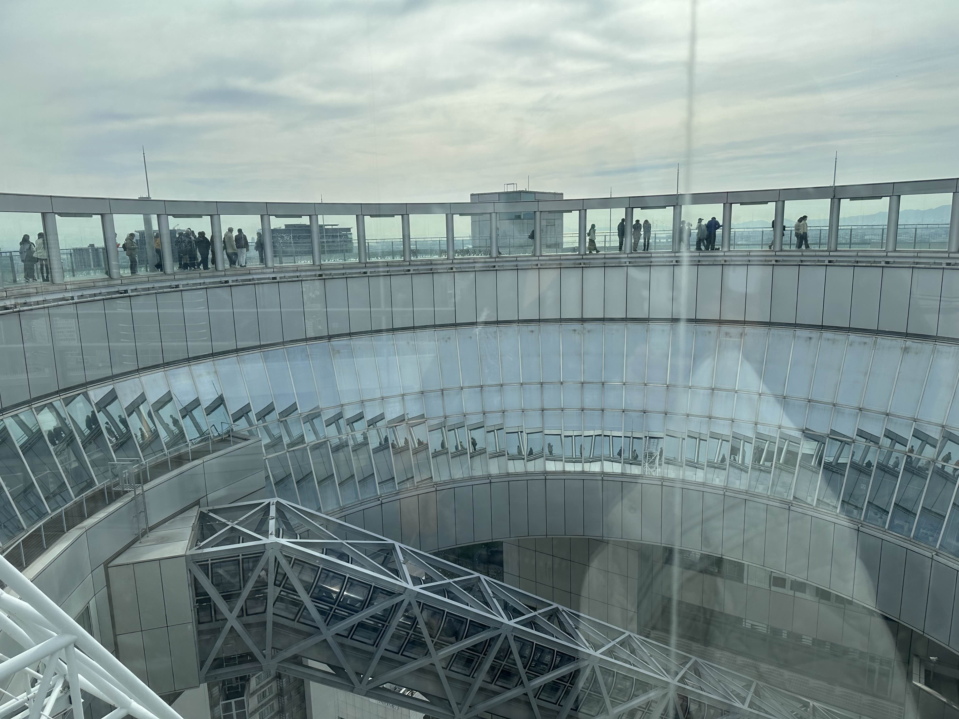 나는 밤보다는 낮이 더 좋다고 느껴졌다. 오사카 시내를 밝은 햇살 아래에서 선명하게 바라볼 수 있기 때문이다. 그리고 예상과 달리 옥상은 바람이 심하게 불지 않아, 꽤 따뜻하고 쾌적하게 구경할 수 있었다. 탁 트인 전망과 높은 하늘, 그리고 엄마와 함께 걷는 이 원형 산책길이 무척 특별하게 느껴졌다.