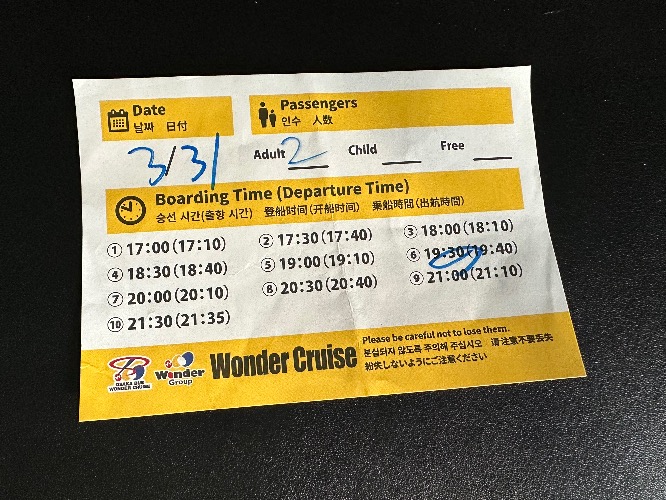 사전에 예약하지 못해 현장 대기 명단에 이름을 올리고 옆 벤치에 앉아 순서를 기다렸다. 우리 앞에도 대기 중인 여행자들이 많았지만, 다행히 7시 30분 출발 배에 결원이 생겨 탑승할 수 있었다.
