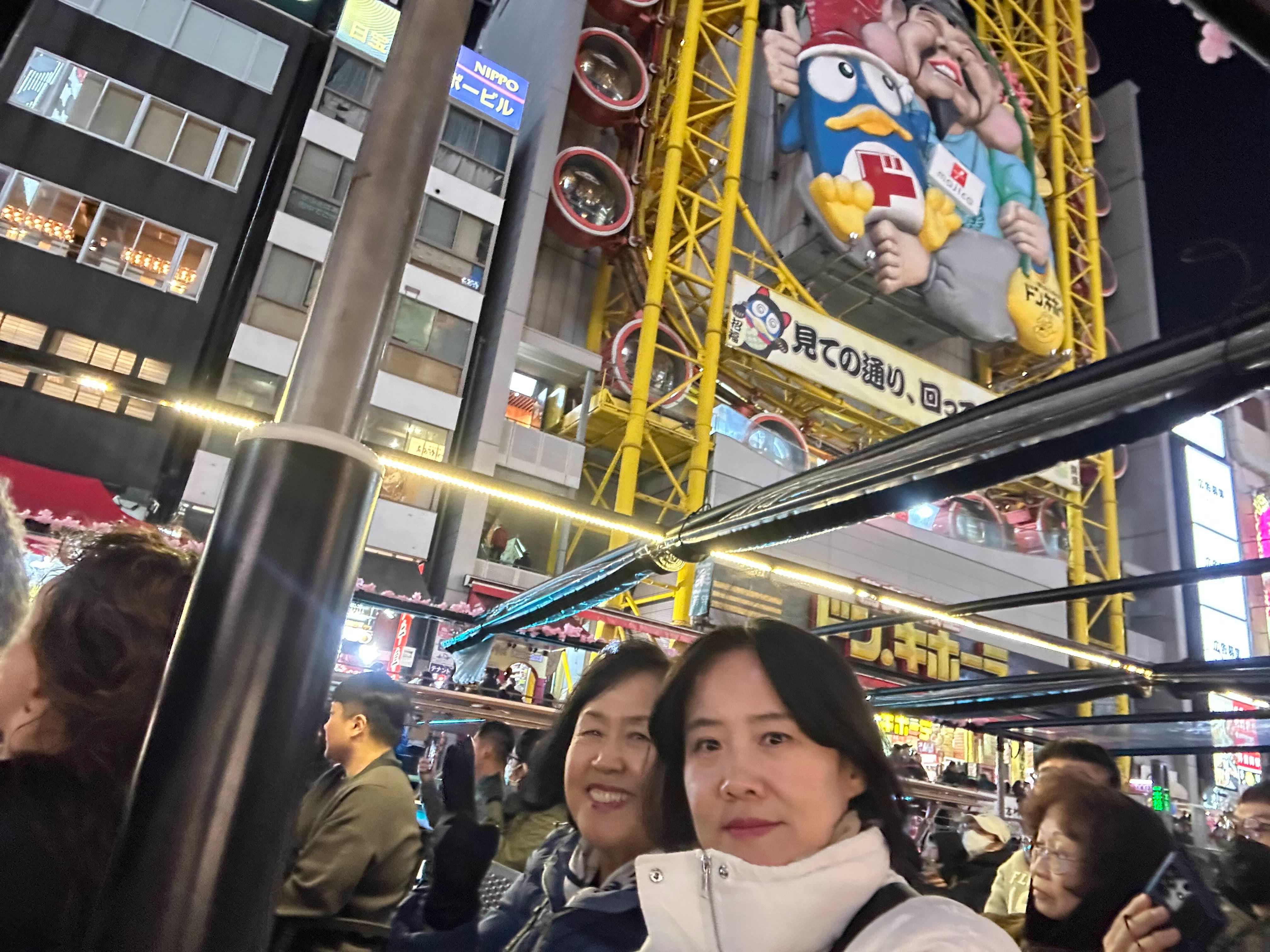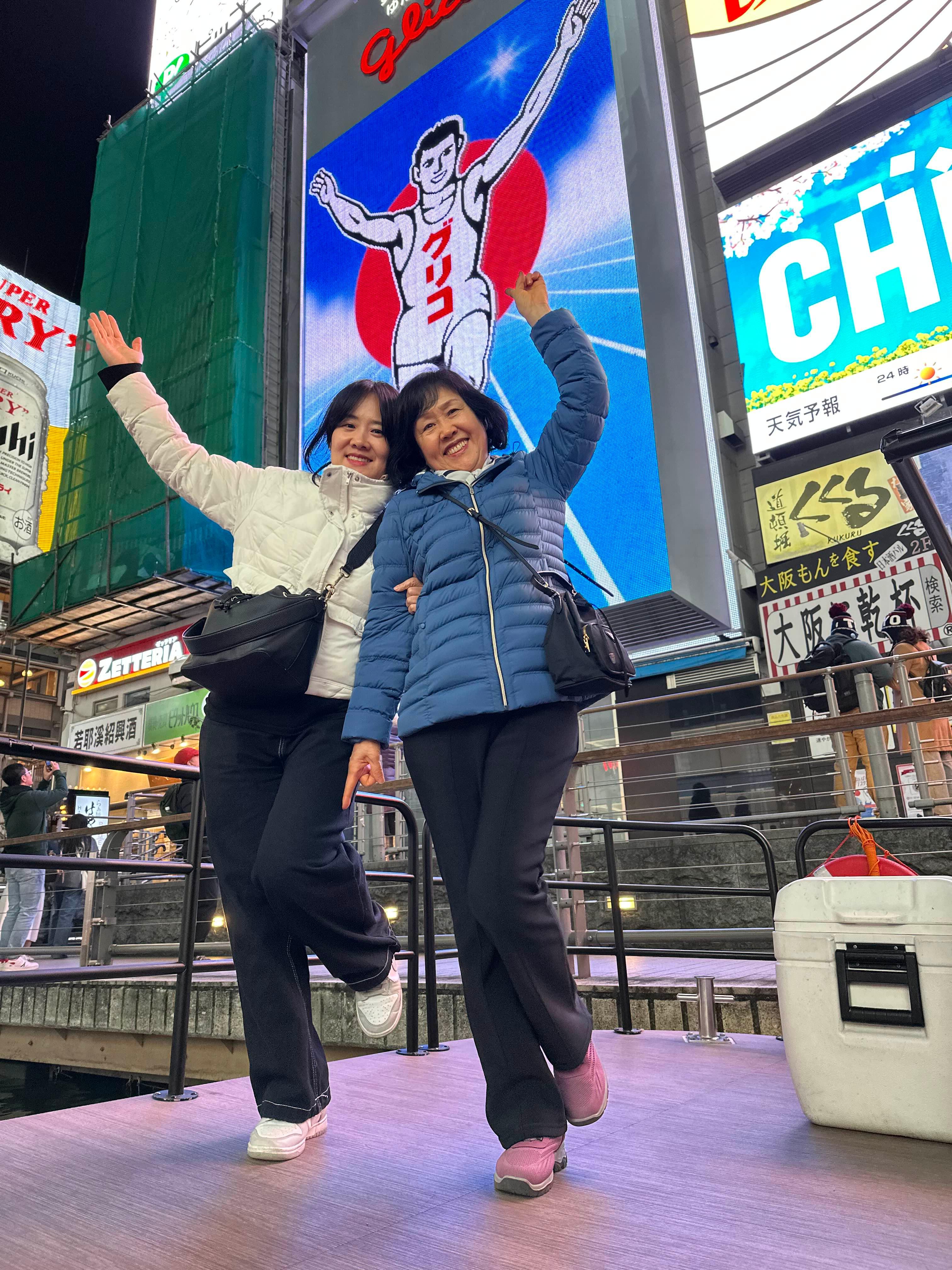 이곳은 오사카의 상징적인 랜드마크로, 달리는 포즈의 남자와 ‘Glico’라는 글자가 적힌 간판은 오랜 시간 동안 오사카를 대표해왔다. 우리는 셀카봉을 이용해 글리코상 앞에서 엄마와 함께 사진을 남기며 또 하나의 추억을 쌓았다.