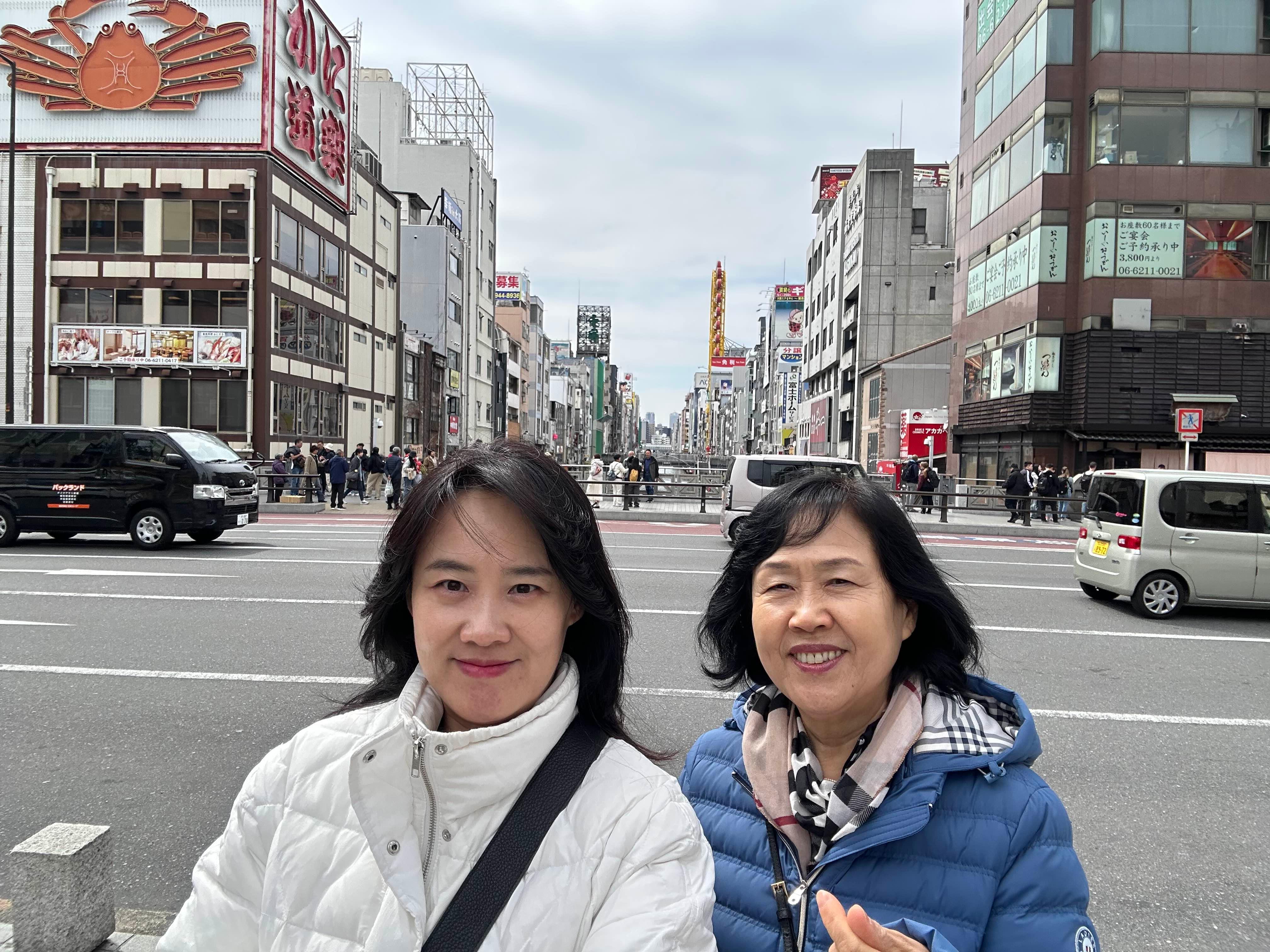 도톤보리강 앞에서 엄마와 함께 셀카를 찍었다. 이번 여행을 준비하면서 셀카봉도 따로 구매했는데, 늘 엄마 사진만 찍어주다 이제는 나도 함께 등장할 수 있으니 좋았다. 지나가는 사람에게 굳이 부탁하지 않아도 되는 자유로움이 너무 좋았다.