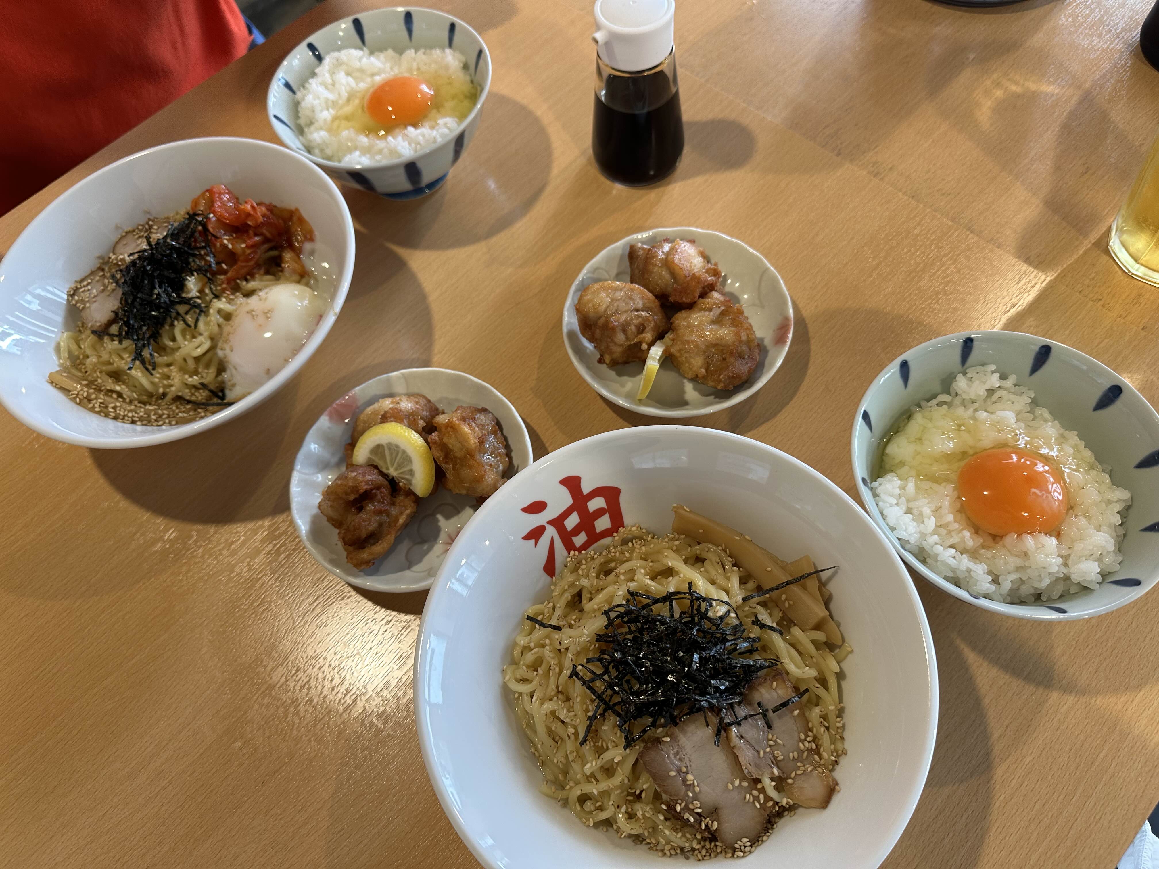 죠신 키즈랜드에서 닛폰바시역으로 직진하던 중 한 가게에서 아부라소바 그리고 가라아케, 계란밥.